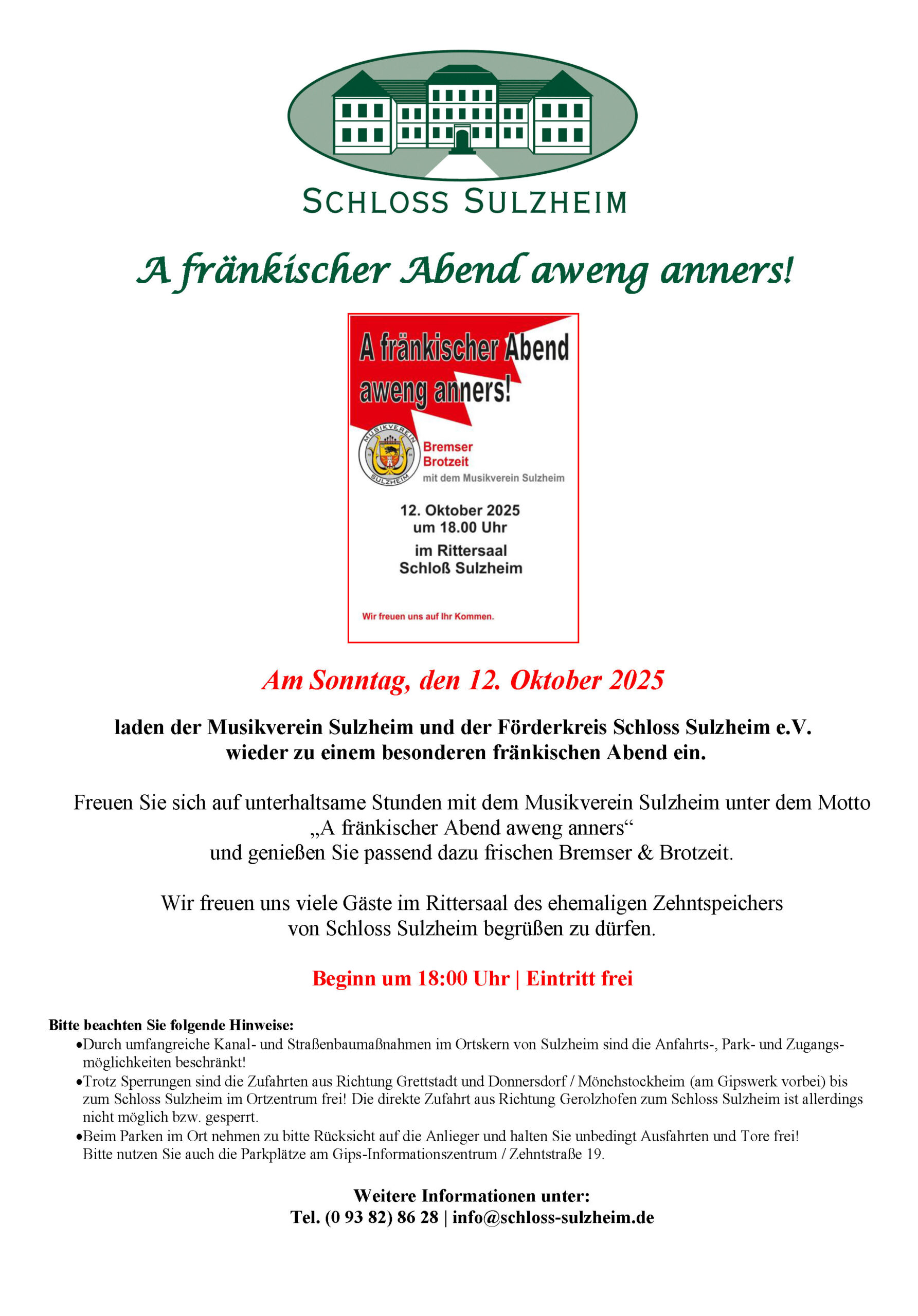 • Fränkischer Abend | Sonntag 12.10.2025, ab 18:00 Uhr | Reservierung empfohlen