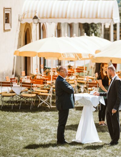 Als zusätzliches Highlight wird ab 2026 unsere ehemalige und frisch restaurierte Hauskapelle als multifunktionaler Eventraum zur Verfügung stehen. Sie ist für max. 100 Personen (stehend) und 65 Personen bestuhlt geeignet. Sie kann für Trauungen, Empfänge, Präsentationen oder Tagungen gebucht werden.