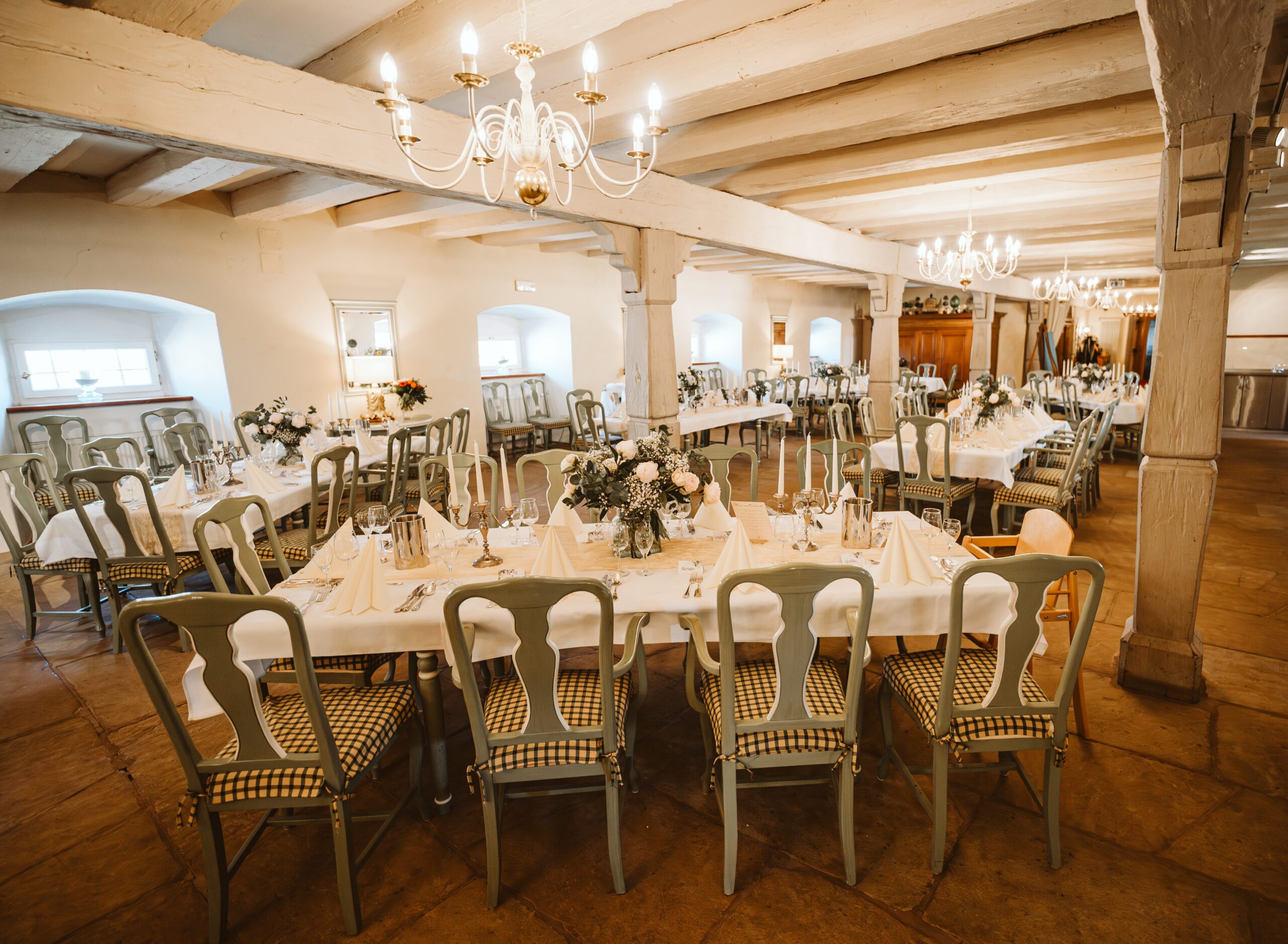 Unsere beiden Festsäle befinden sich zusammen mit unserer eigenen Schlossküche im ehemaligen Zehntspeicher.